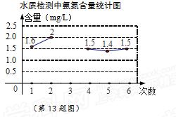 为监测某河道水质,进行了6次水质检测,绘制了如图的氨氮含量的折线统计图.若这6次水质检测氨氮含量平均数为1.5 mg/L,则第3次检测得到的氨氮含量是
